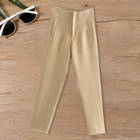 Женские летние повседневные брюки на молнии с высокой талией офисные брюки с карманами сплошной цвет плиссированные прямые длинные брюки уличная одежда