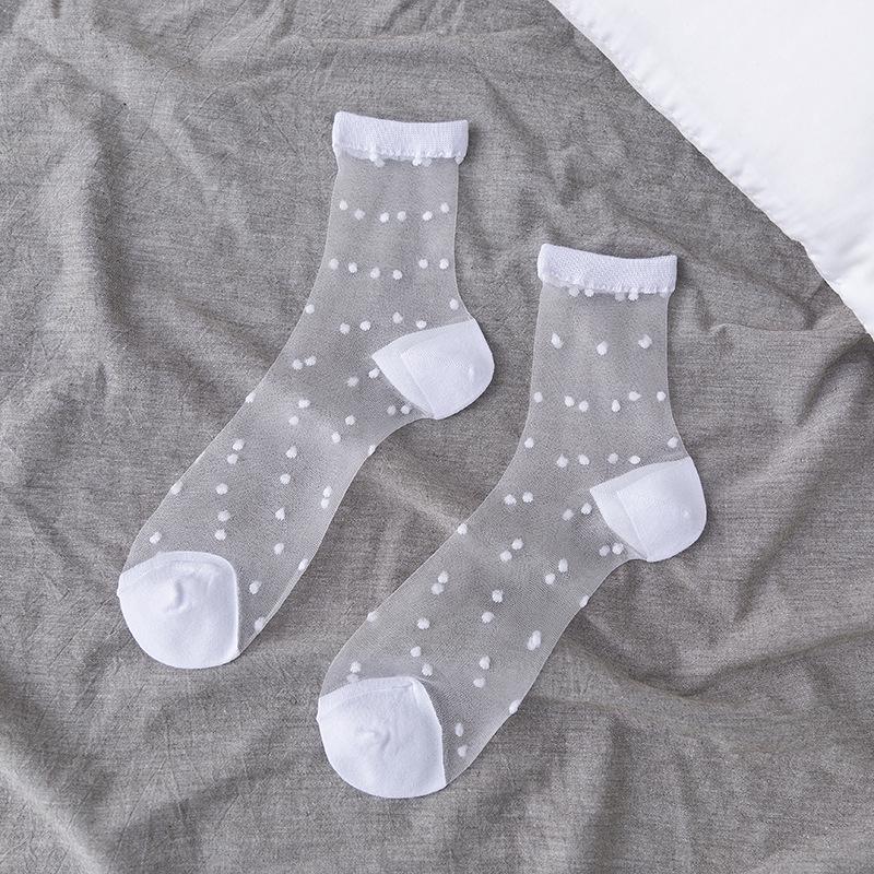 Женские летние прозрачные чулки - Черные и белые в горошек, Вертикальная полоска, С рисунком сердечек One Size