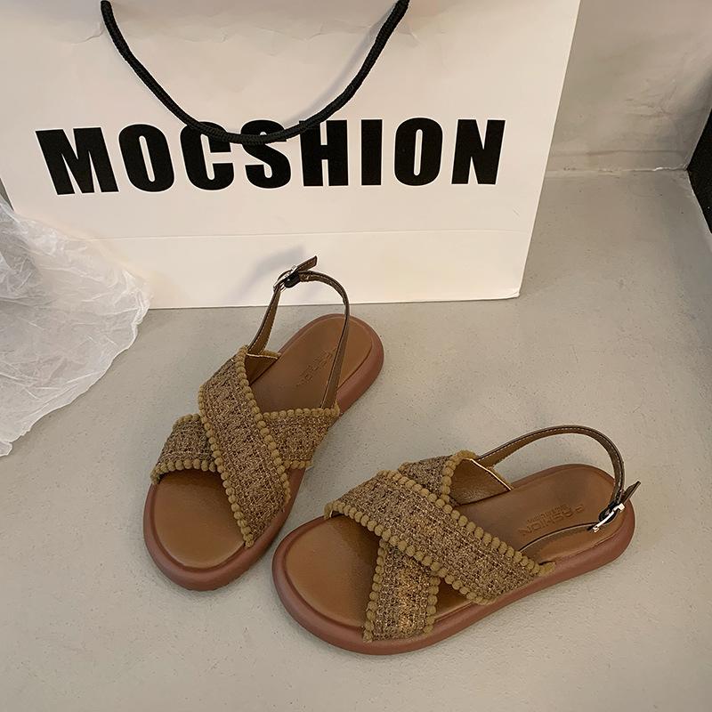 Женские летние сандалии на плоской подошве, новый сказочный стиль с юбкой, богемные, для отпуска, приморские, пляжные сандалии 42 коричневый