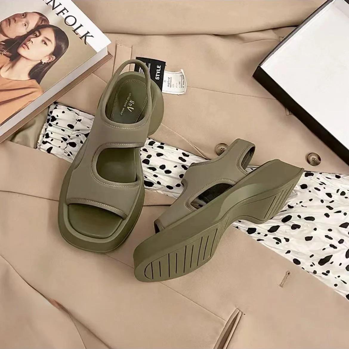 Женские летние сандалии 2024 года, новый стиль, мода, простая повседневная эластичная ткань, открытый носок, мягкая подошва, римская пляжная обувь для женщин 40 зелёный