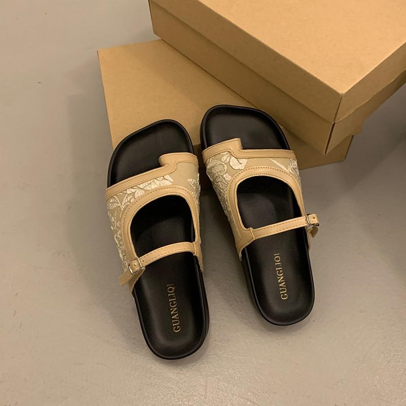 Женские летние тапочки на плоской платформе с застежкой на носок, с квадратным носком, мягкие женские тапочки