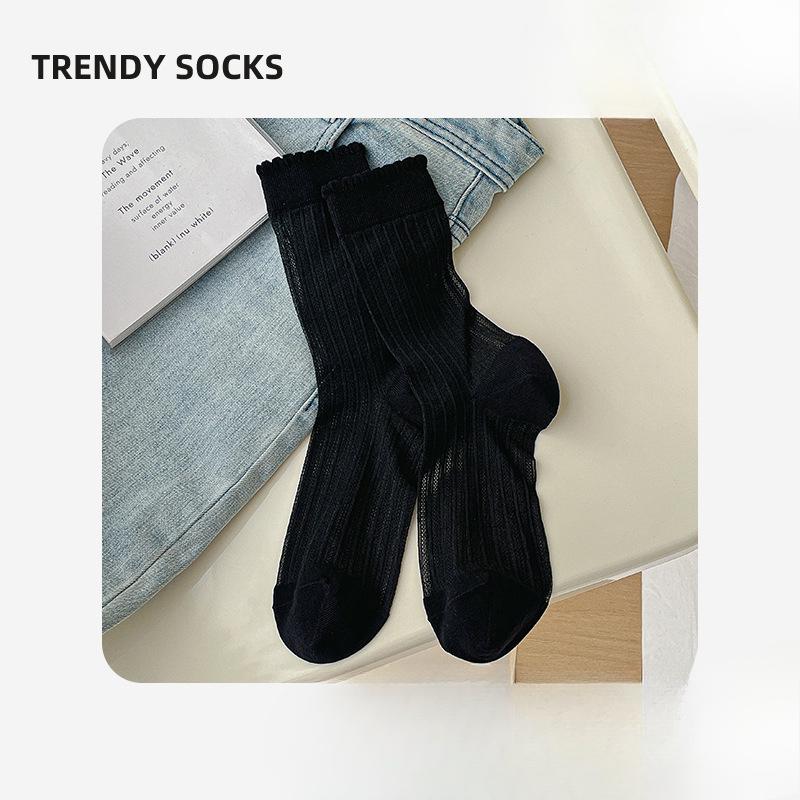 Женские летние тонкие деревянные ушные края кружевные полые сетчатые дышащие носки в трубке 1 pair чёрный