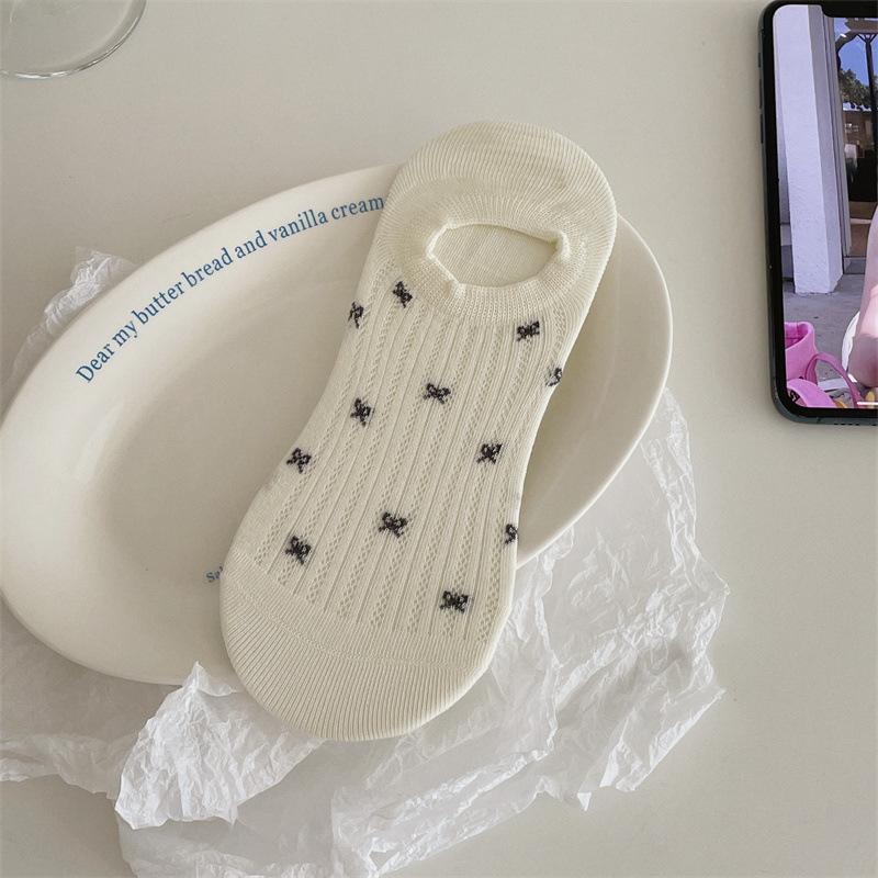 Женские летние тонкие носки-лодочки с бантом, нескользящие, не спадающие, с невидимым полым дышащим верхом 1 pair молочный белый