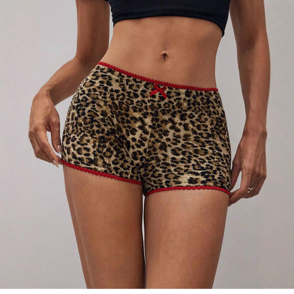 Женские летние шорты большого размера с леопардовым принтом и бантом - Удобные, Повседневные, Стройнящие XL цветной печати леопарда