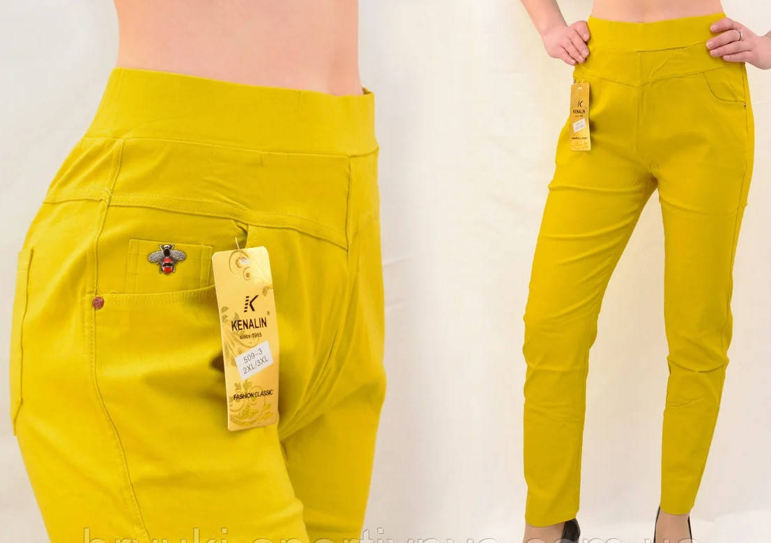 Женские летние яркие брюки с пчелой стрейч в больших размерах 3XL\4XL ТОЛЬКО! хлопок 35%, Разные цвета