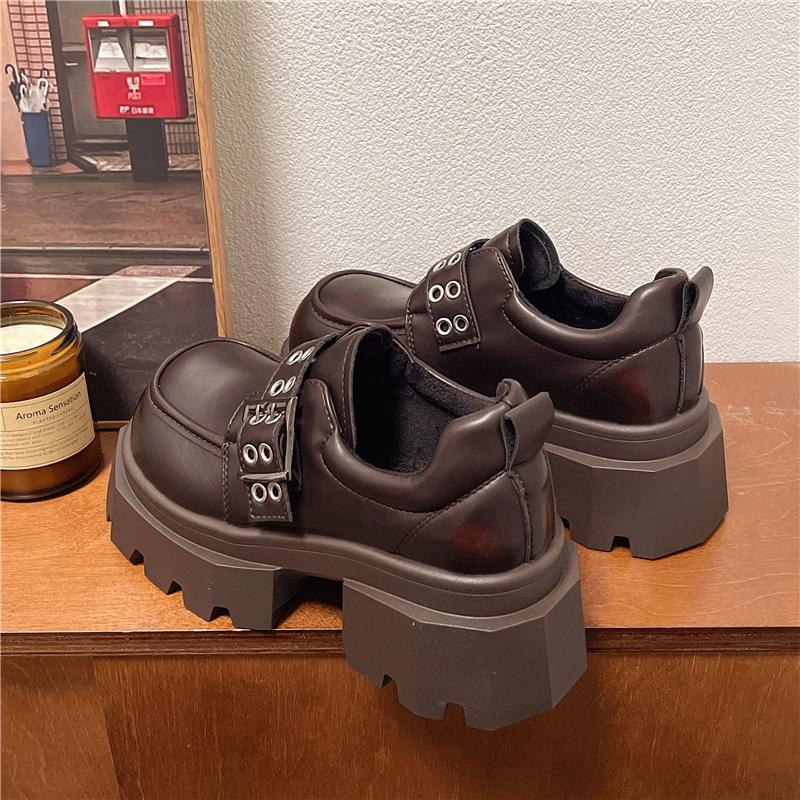 Женские лоферы 2025 новые милые и крутые в стиле Брок с толстой подошвой, увеличивающие рост, одинарные туфли, ретро черные нескользящие маленькие кожаные туфли 40 коричневый