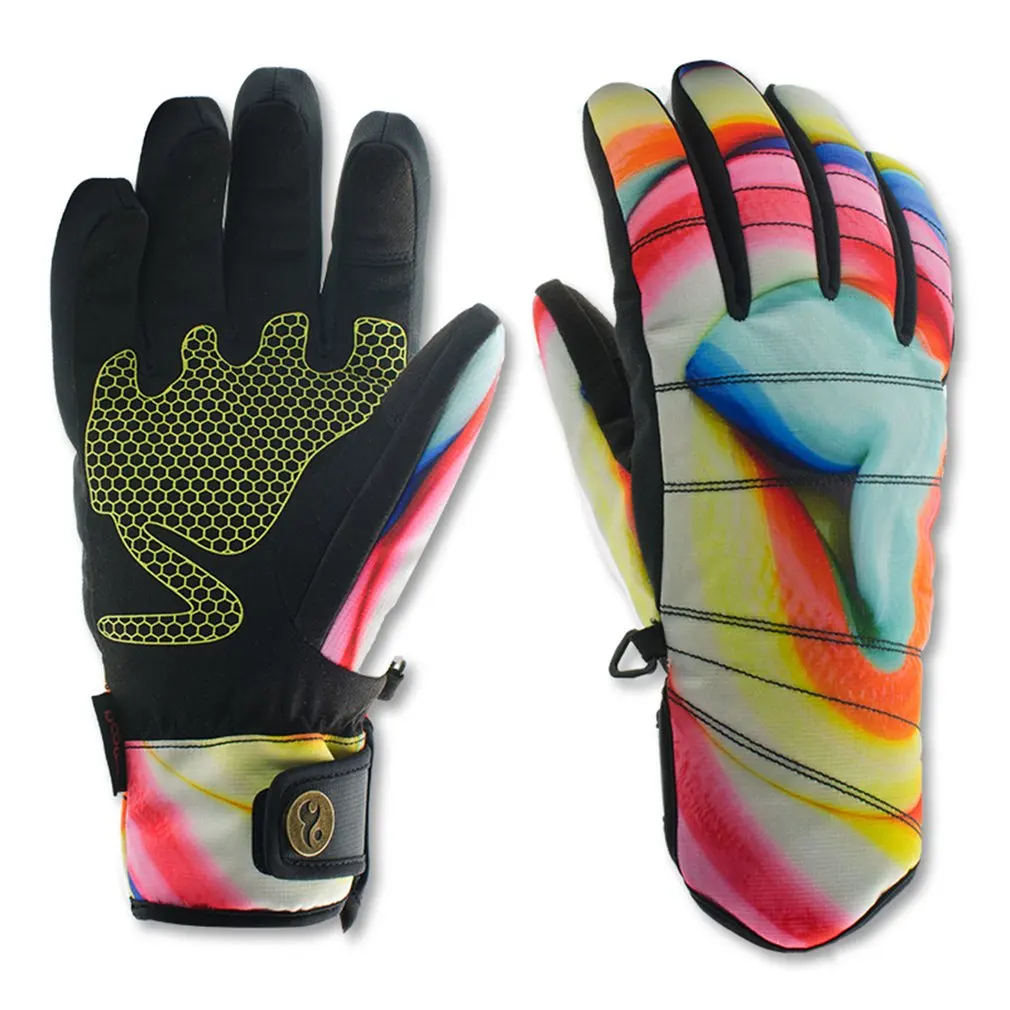 Женские лыжные перчатки, стильные водонепроницаемые ветрозащитные Нескользящие гибкие перчатки с принтом для катания на коньках, зимние т...