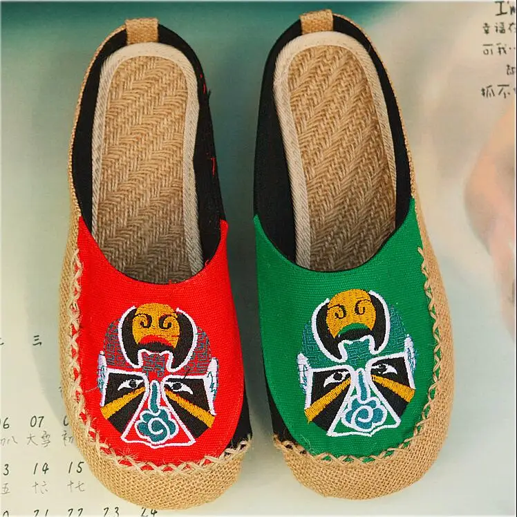 Женские льняные домашние тапочки, большие тапки с принтом Пекинской оперы, драмы, с вышивкой, в китайском национальном стиле