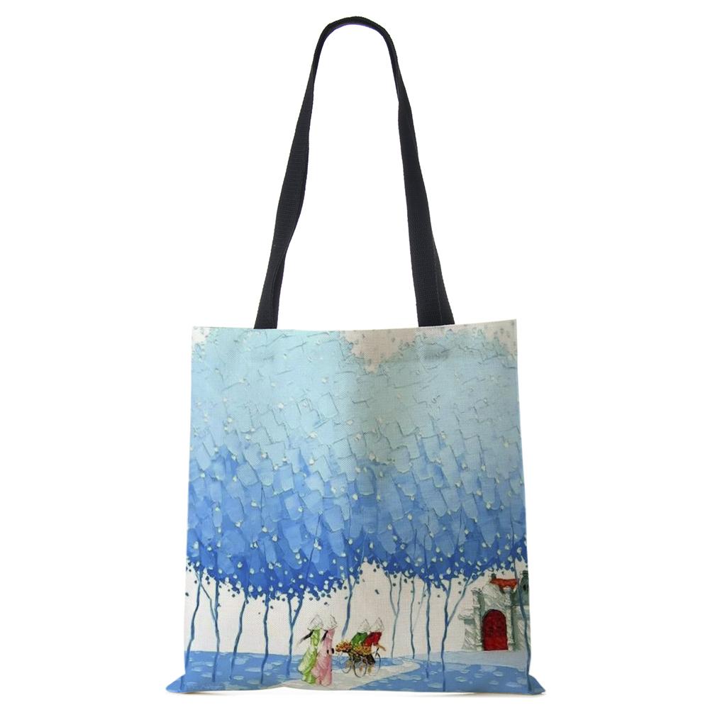 Женские льняные сумки с принтом, повседневные дорожные пляжные подарочные пакеты