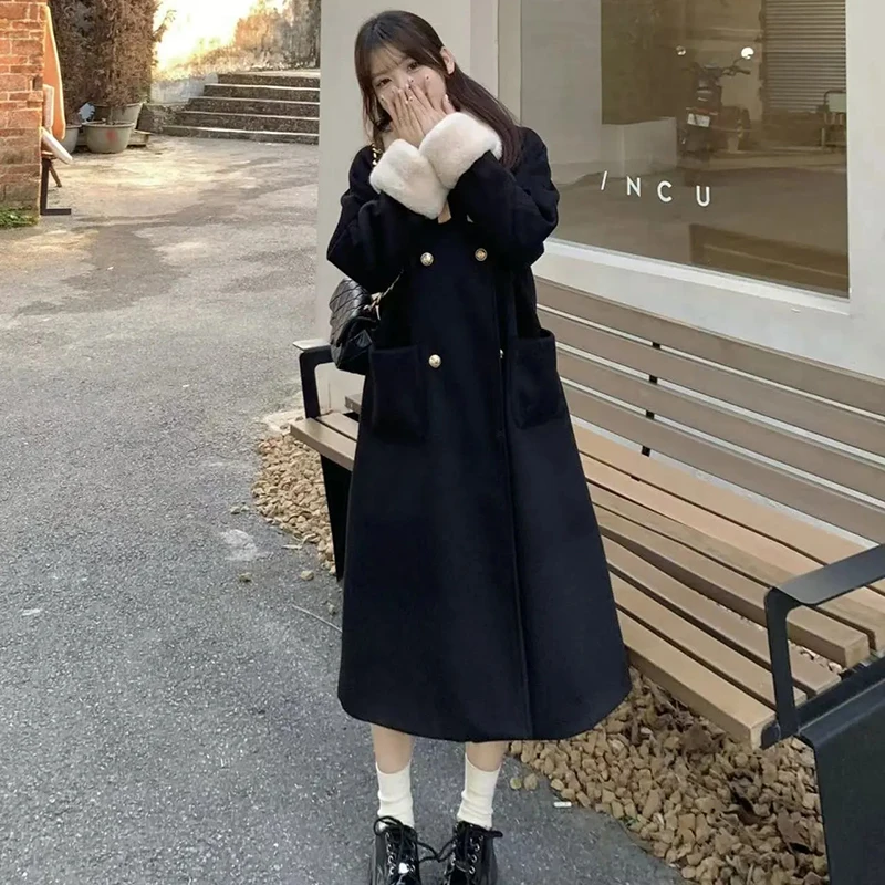 Женские милые пальто миди с бантом, меховой воротник, лоскутная элегантная осенне-зимняя плотная верхняя одежда, маленький аромат, эстетические офисные женские топы, новинка