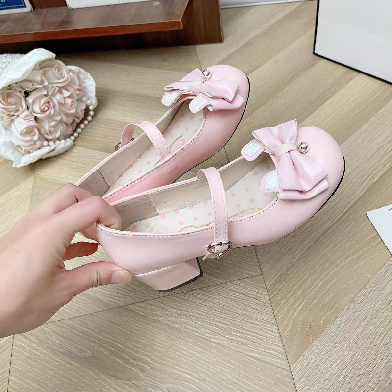 Женские милые туфли для косплея Лолиты с бантом, средний широкий каблук, платформа, туфли Мэри Джейн, ремешок с пряжкой, принцесса, форма, розовый, белый 35 розовый
