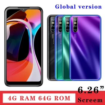A60 Smartphones Water Drop screen MTK6580 4G RAM 64G ROM 13MP 6.26 inch Android Mobile Phones Face id Unlocked 18:9 Wifi 2SIM