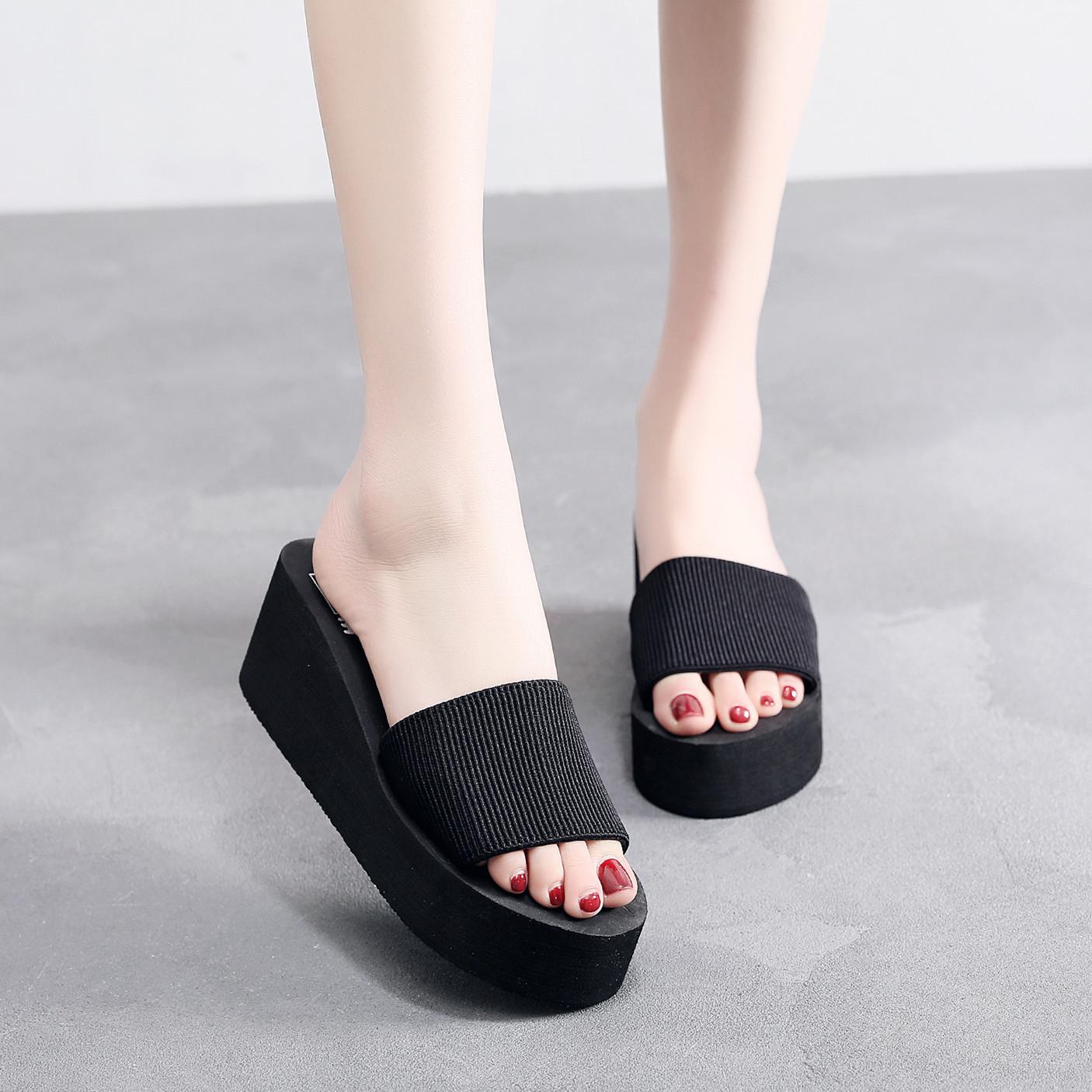 Женские модные летние босоножки на танкетке с толстой подошвой – нескользящие, универсальные шлепанцы на платформе для отдыха на природе и пляжа. 40