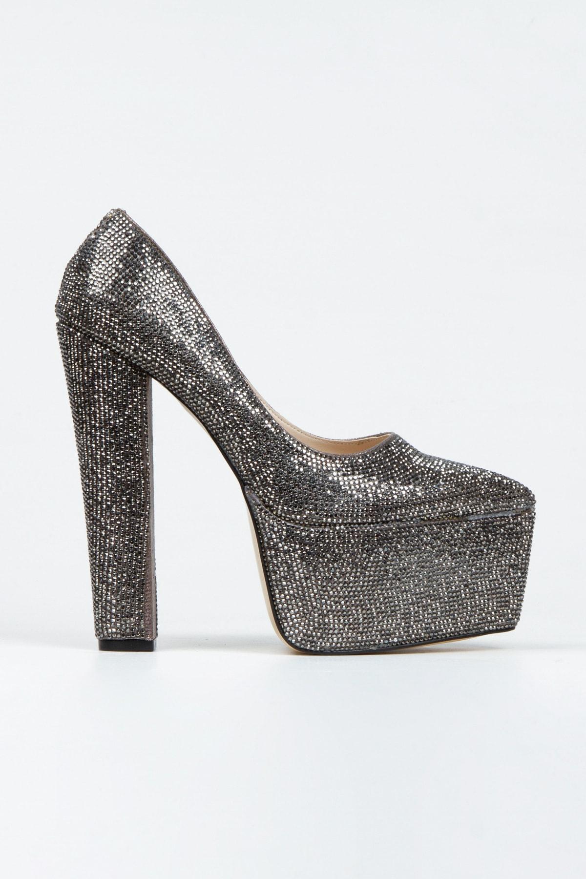 Женские модные платиновые классические вечерние модельные туфли с острым носком на толстом каблуке и платформе с камнями для вечеринок 35