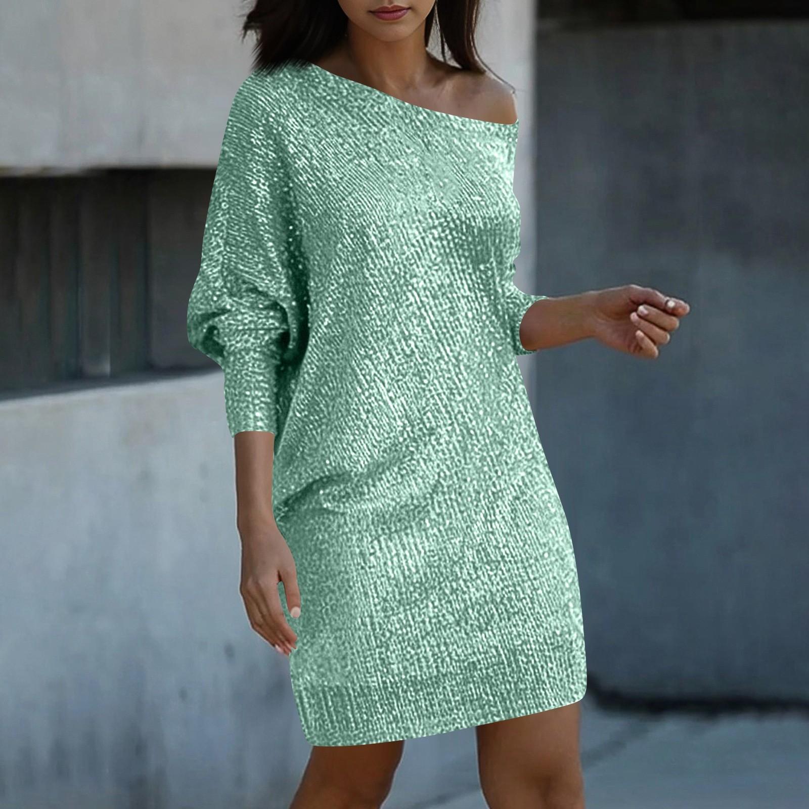 Женские модные платья Платья с косыми плечами и длинными рукавами Однотонные сексуальные платья XXL