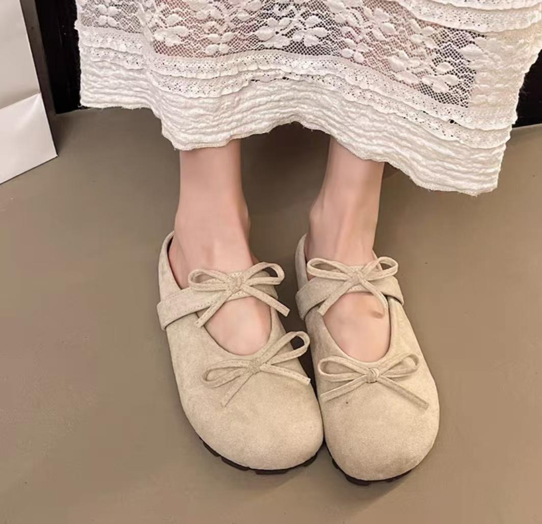 Женские модные повседневные замшевые шлепанцы с двойным бантом, осень 2025, новая коллекция, на плоской подошве, однотонные, полузакрытые 40 абрикосовый