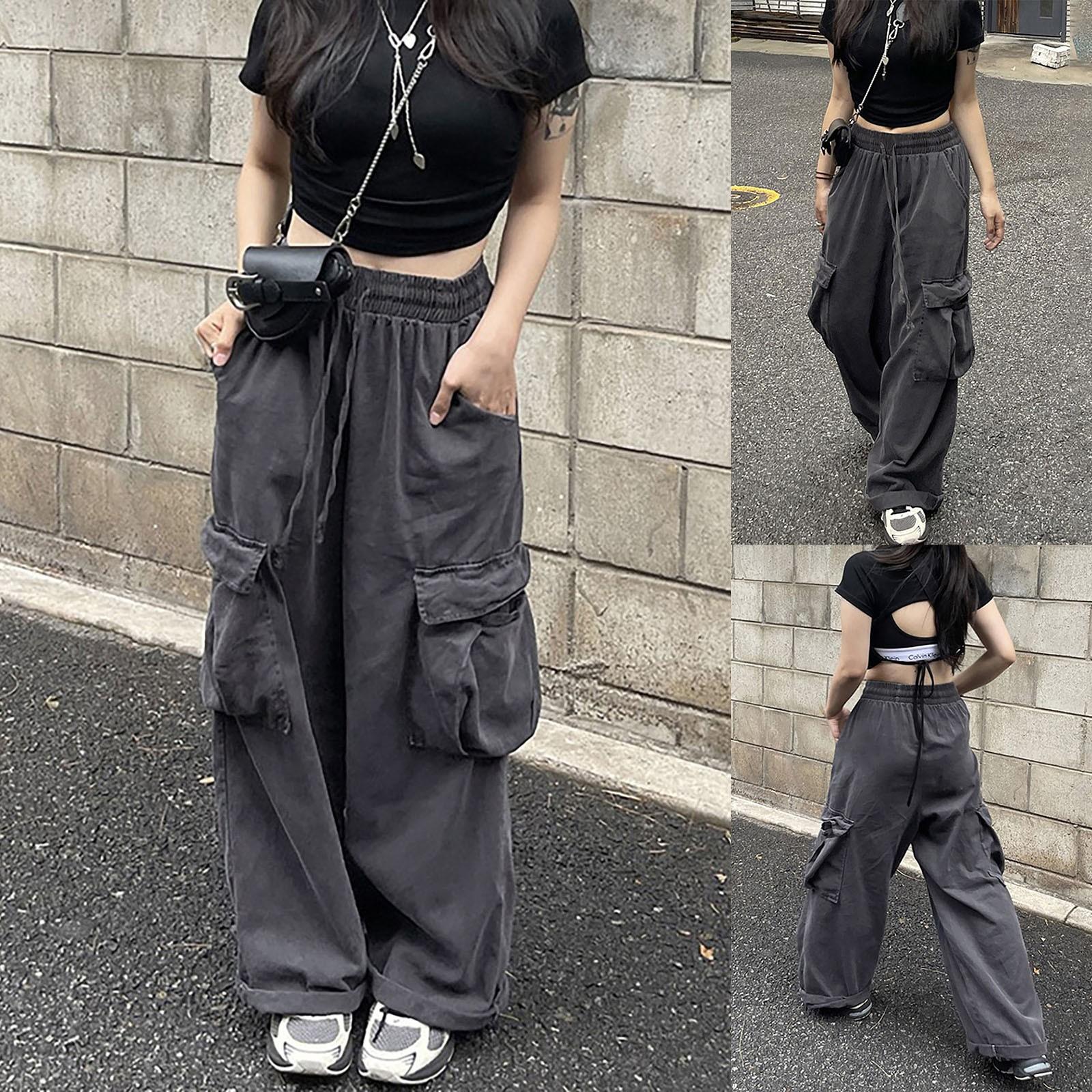 Женские модные уличные однотонные свободные широкие брюки-карго с манжетами и карманами