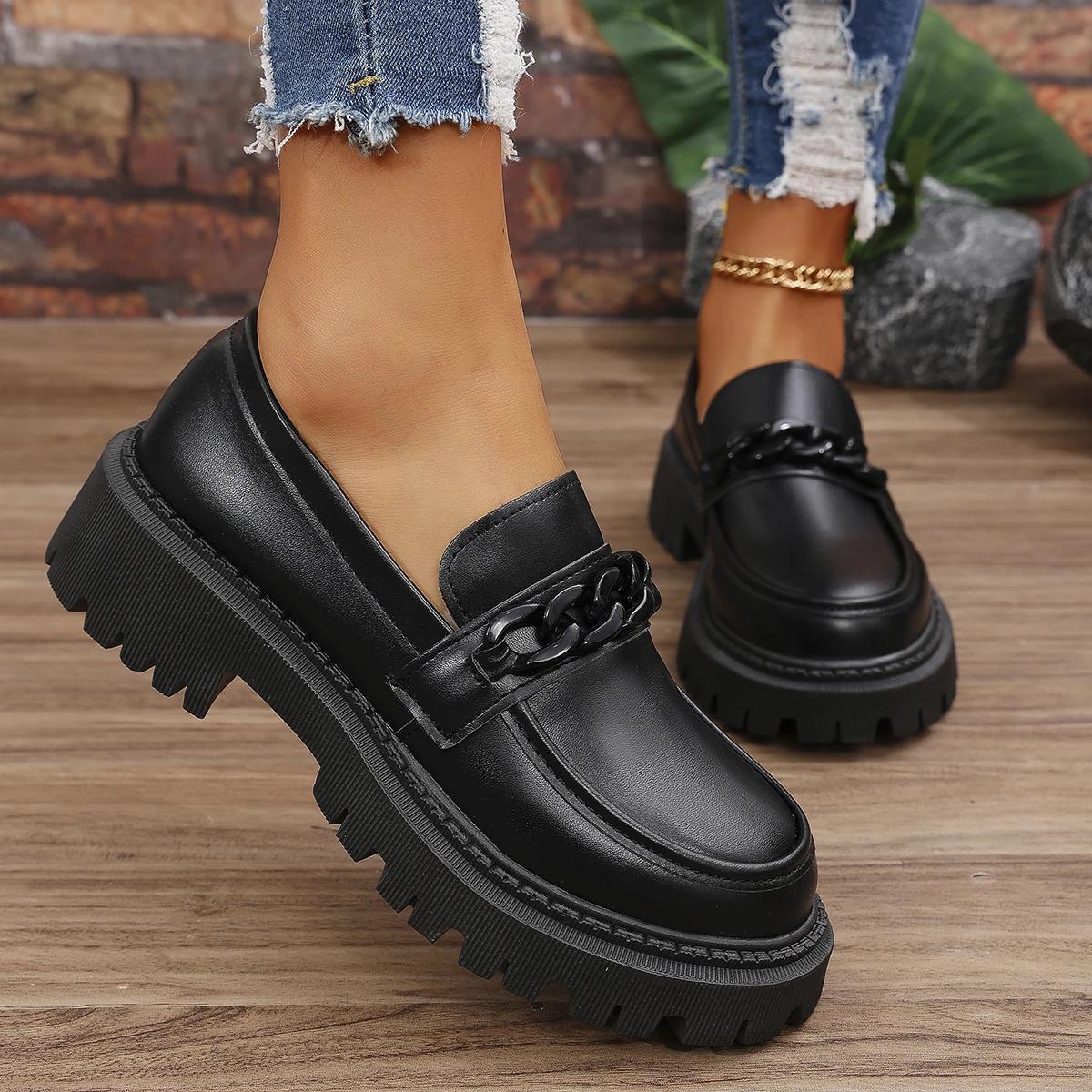 Женские мокасины на платформе с цепочным декором, модные туфли в стиле преппи, женские туфли из лакированной кожи, женские туфли на плоской подошве, большие размеры 42