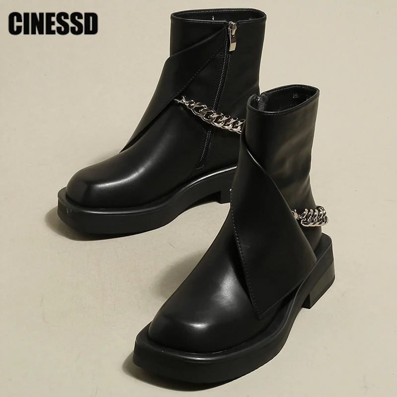 Женские мотоциклетные короткие ботильоны Chian в стиле панк, новинка 2022, Готическая женская уличная обувь на низком каблуке, женские крутые че...