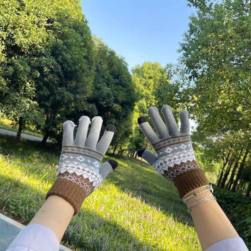 Женские и мужские вязаные шерстяные перчатки без пальцев с цветными блоками – Осенне-зимнее тепло с сенсорным экраном для езды на велосипеде на открытом воздухе One Size серый