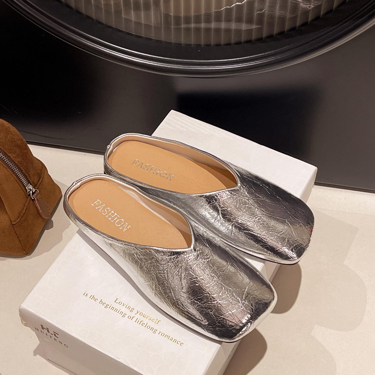 Женские мюли, летние элегантные квадратные закрытые тапочки на плоской подошве, женские туфли, повседневные кожаные черные белые шлепанцы, большие размеры 35-42 42