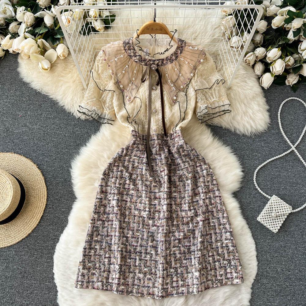 Женские новые модные летние элегантные платья с вышивкой из бисера и короткими рукавами, сетчатое твидовое лоскутное вечернее платье