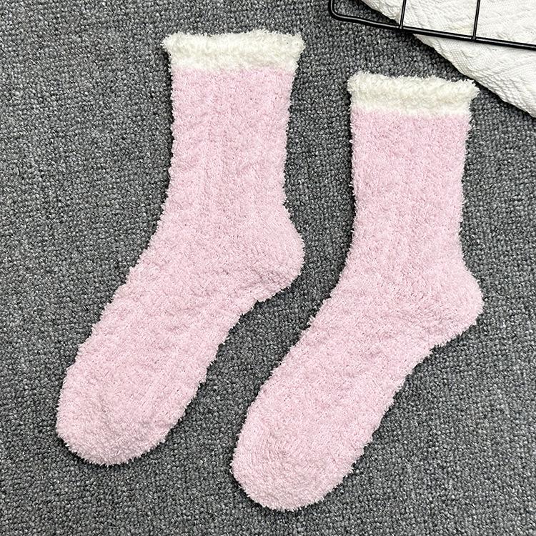 Женские носки из кораллового велюра, утолщенные махровые напольные носки для осени и зимы, средней длины, домашние послеродовые носки, теплые носки для сна до середины икры 1 pair