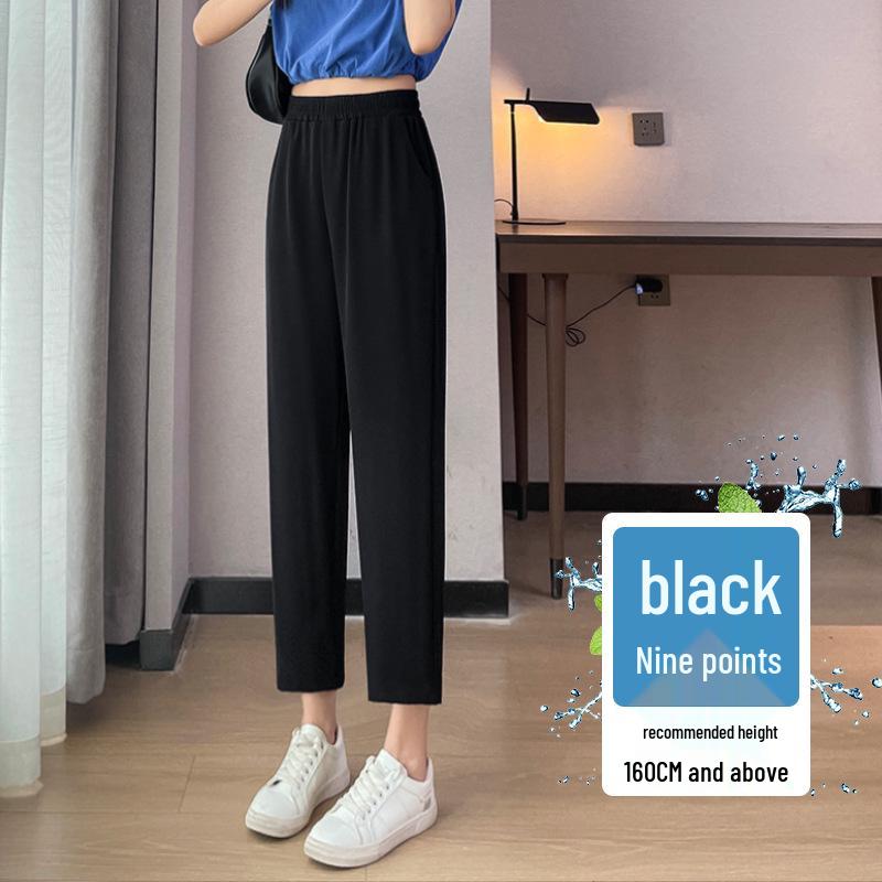 Женские облегающие брюки прямого кроя из ледяного шелка, маленькие летние прохладные 2025, эластичная талия, костюмный стиль XL
