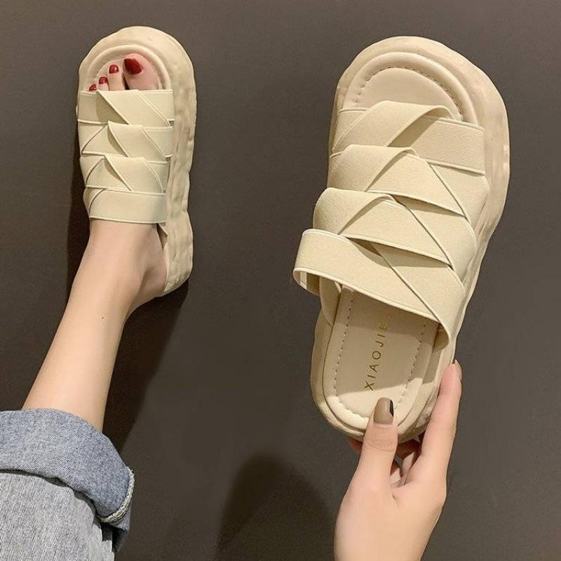 Женские однотонные полые тапочки, женская плетеная эластичная лента на низком каблуке, противоскользящая мягкая подошва с открытым носком, римская пляжная обувь 40 белый