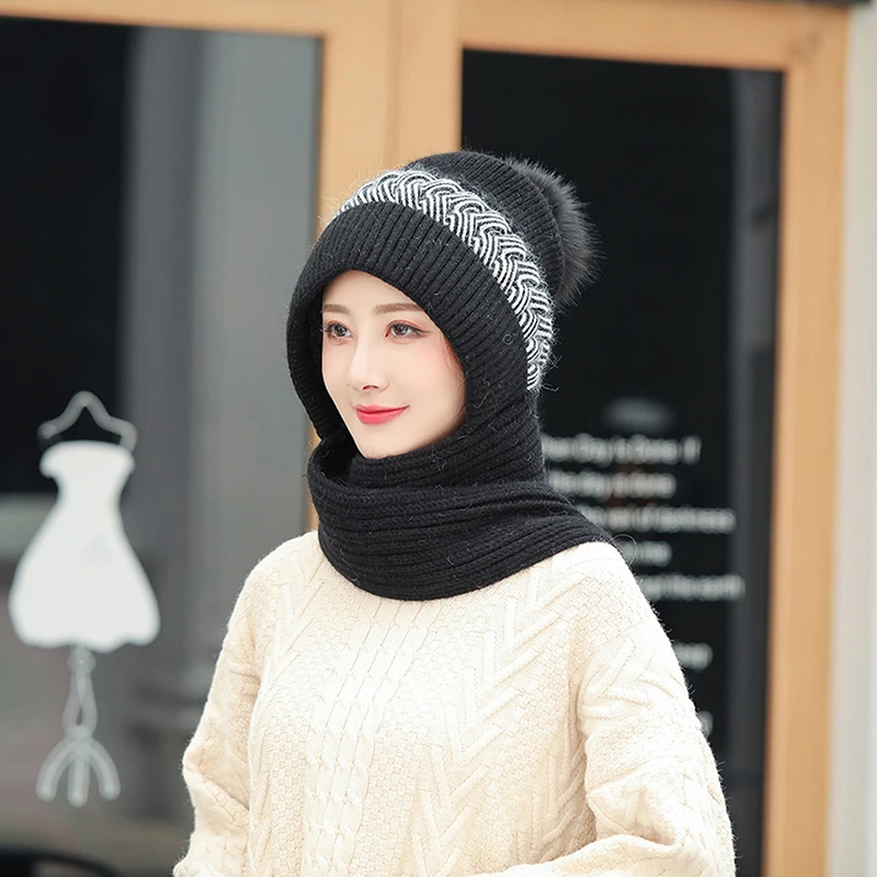 Женские осенне-зимние облегающие шапки, мягкая теплая шерстяная вязаная шапка-шарф в Корейском стиле для девушек, женская спортивная шапка,...