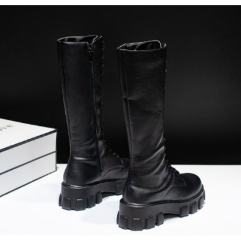 Женские осенние ботинки до колена в британском стиле на платформе и толстой подошве, с боковой молнией, минималистичные ботинки-байкеры на шнуровке 35
