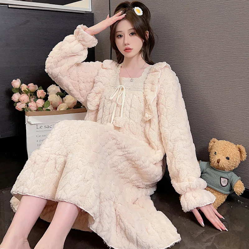 Женские пижамы больших размеров, зимняя ночная рубашка, фланелевая ночная рубашка, коралловая утепленная одежда для сна, сохраняющая тепло, домашняя одежда, милые милые пижамы
