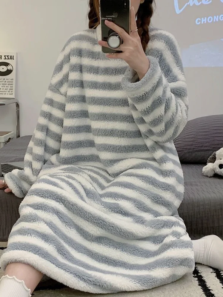 Женские пижамы из кораллового флиса, новая модель, осенне-зимняя одежда для сна, ночная рубашка, фланелевая флисовая подкладка, утепленный милый пижамный костюм, домашняя одежда