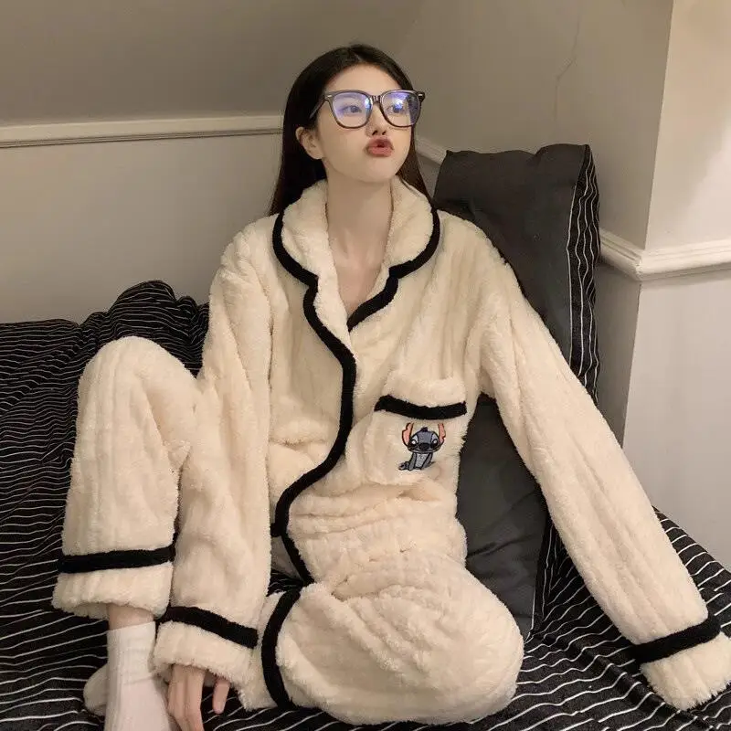 Женские пижамы с милой строчкой в стиле аниме, 2 шт., утолщенные теплые хлопковые пижамы с героями мультфильмов каваи, хлопковая одежда для сна для девочек, зимняя теплая одежда для сна