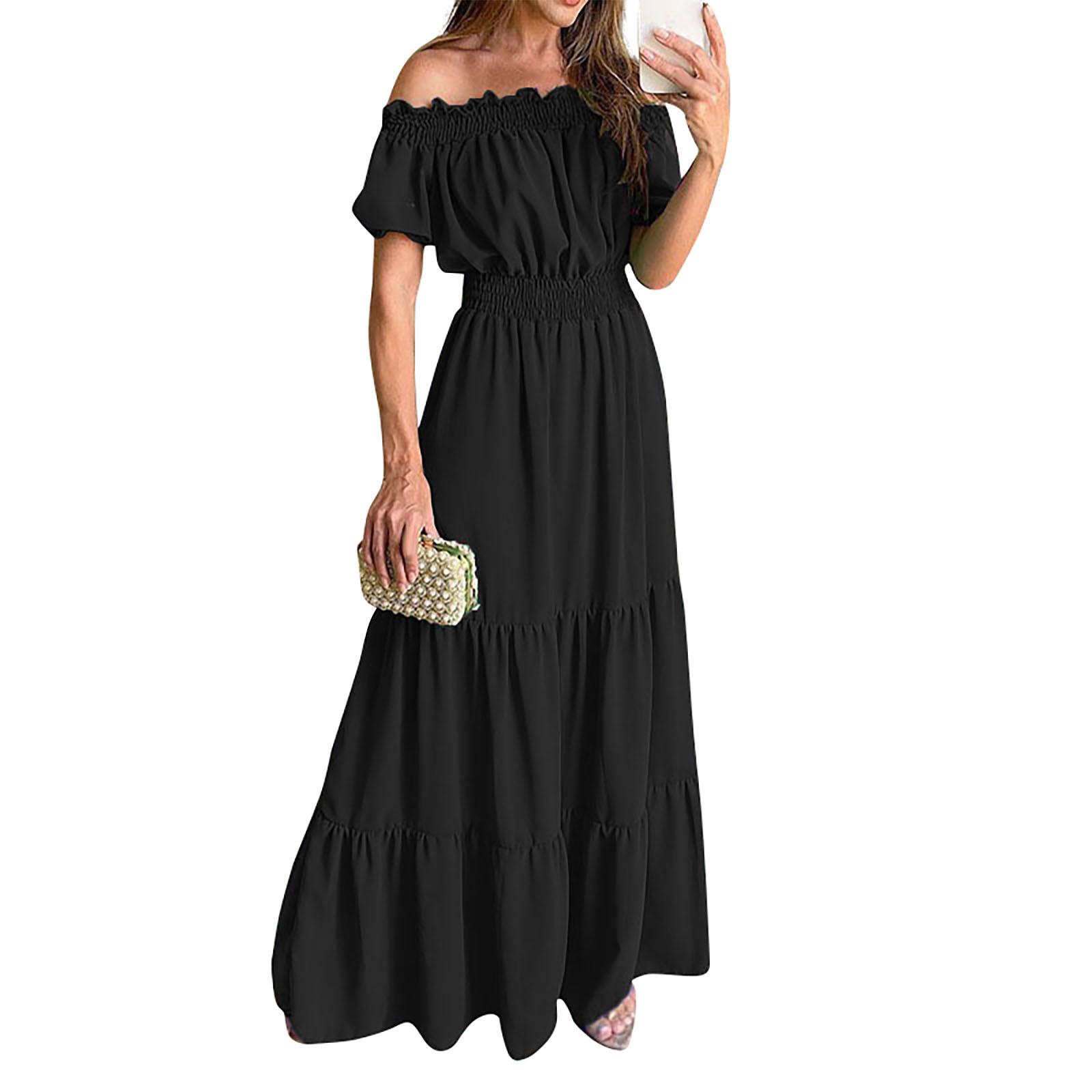 Женские платья, летнее плиссированное платье в стиле бохо, милое струящееся пляжное платье без рукавов, прямое платье-футболка с круглым вырезом XL чёрный