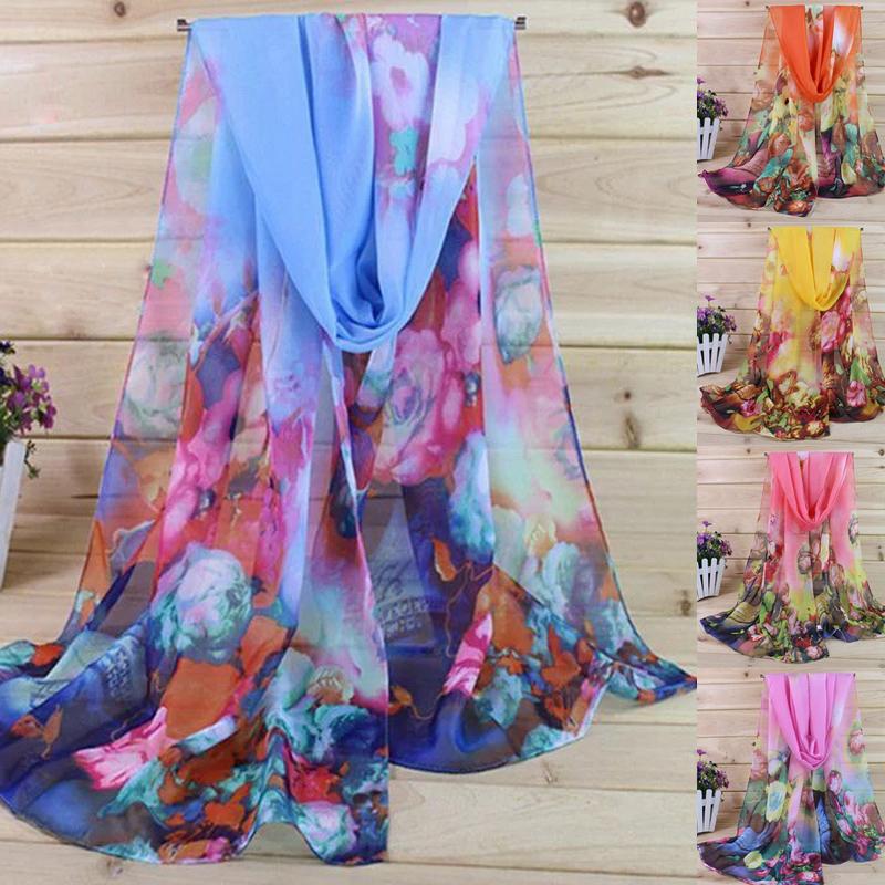 Женские пляжные шифоновые шарфы с цветочным принтом, шарф, длинная шаль, накидка