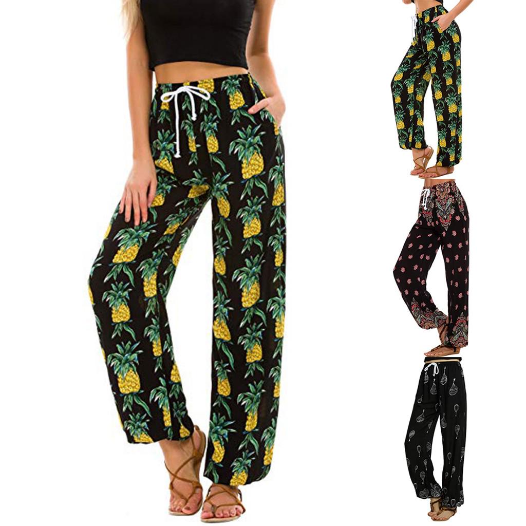 Женские повседневные брюки со средней талией и цветочным принтом, брюки для йоги в стиле бохо, брюки для бега, брюки для бега