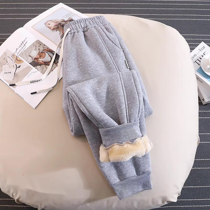 Женские повседневные джоггеры из овечьей шерсти - Осень/Зима 2024: Свободный крой, манжеты, флисовая подкладка из хлопка для тепла L