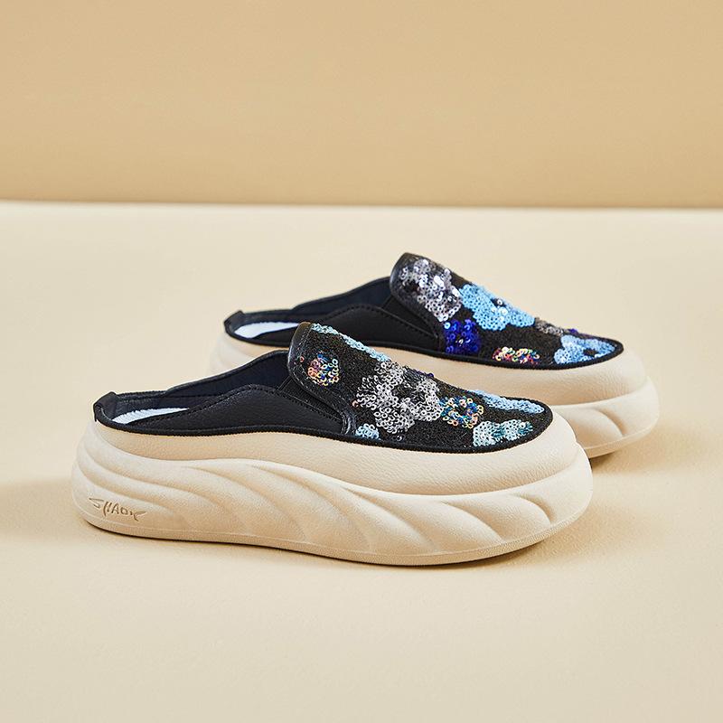 Женские повседневные кроссовки с открытой спиной, лоферы, туфли на нескользящей платформе, модельные туфли для женщин, прогулочная обувь, мюли, летние легкие пляжные шлепанцы, сандалии 40 чёрный