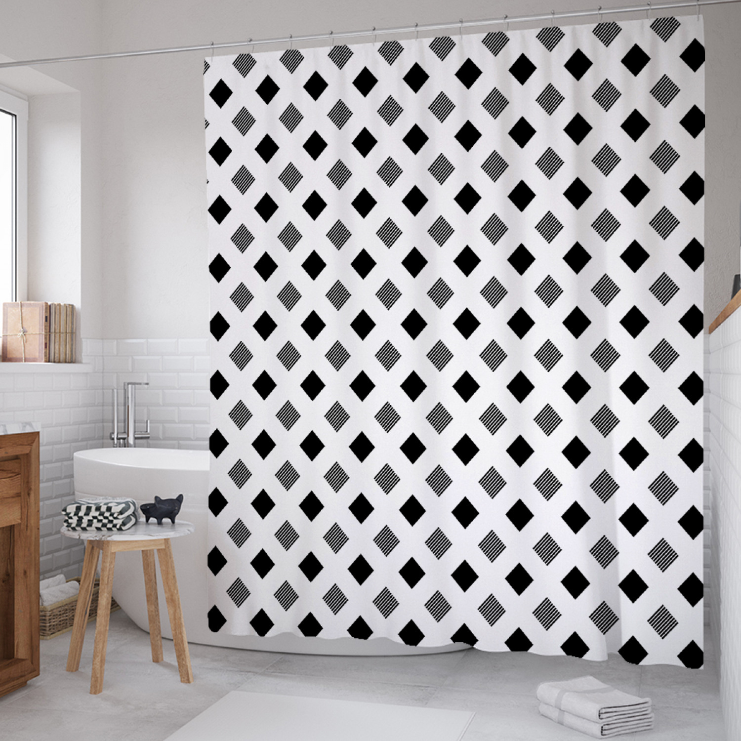 Штора для ванной JoyArty "Полосатые ромбы" из сатена, 180х200 см с крючками, Белый, Полосатые ромбы