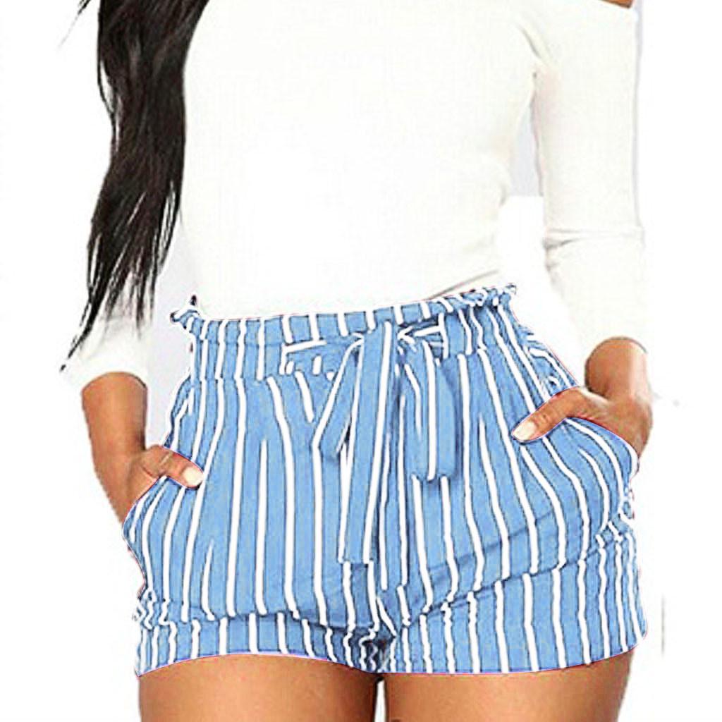 Женские полосатые карманные повязки с высокой талией, легкие эластичные повседневные короткие брюки