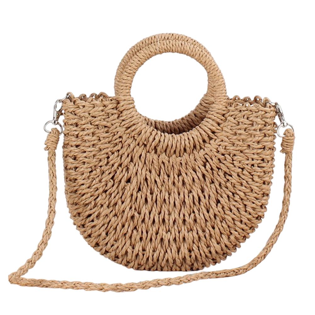 Женские полукруглые сумки с верхней ручкой, плетеные вручную небольшие сумки-тоут, модные повседневные простые праздничные соломенные сумки для отпуска