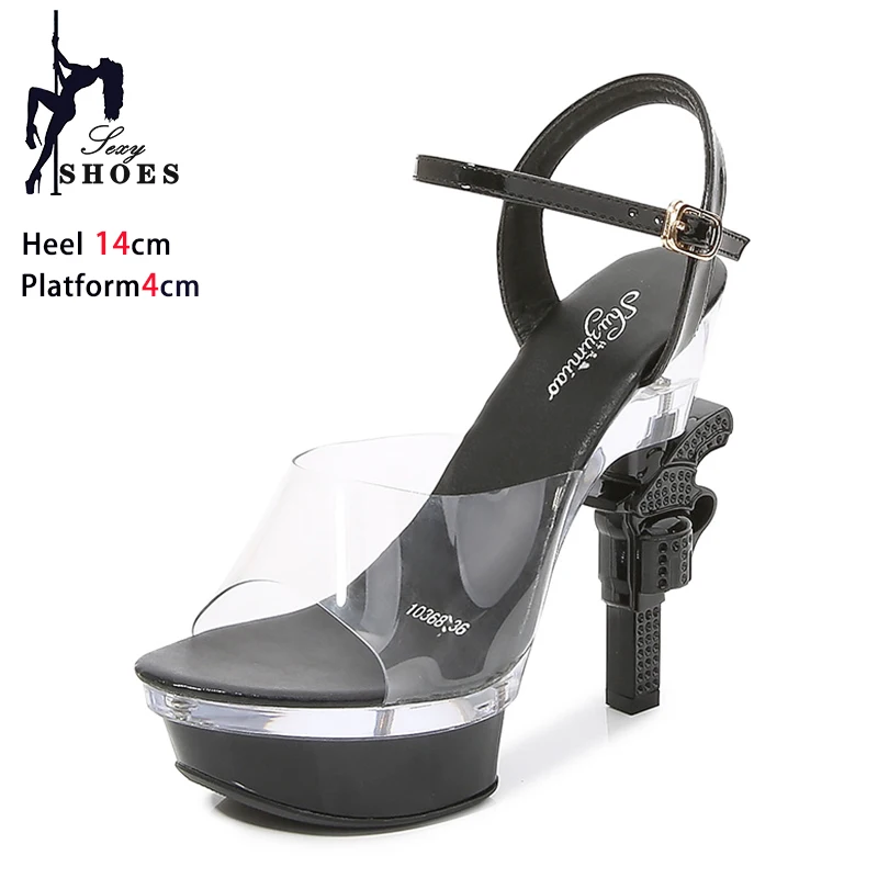 Женские прозрачные сандалии из пвх на толстой платформе 14 см, необычный стиль, женские Клубные сандалии на высоком каблуке, новая летняя модель 2024, модельные туфли черного цвета