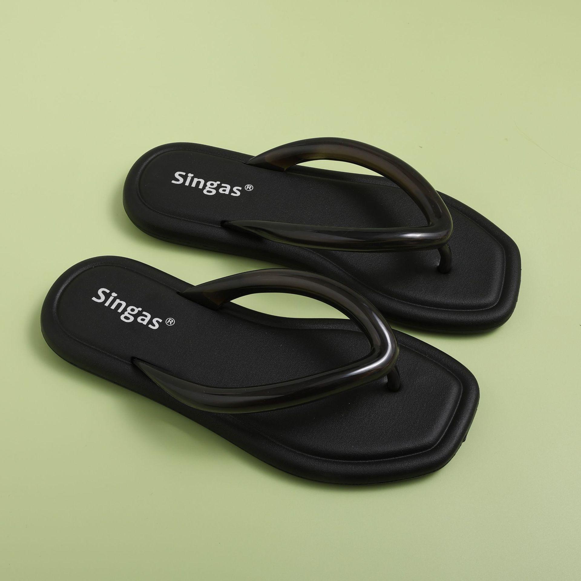 Женские прозрачные шлепанцы с перемычкой для пальца: Мягкие подошвы, нескользящие сандалии для пляжа и дома 36-37 чёрный