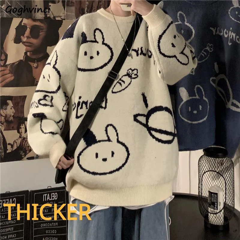 Женские пуловеры, утепленные парные пуловеры с принтом, о-образным вырезом, милые ретро-пуловеры в стиле ольччан, кролик, теплая одежда для д...