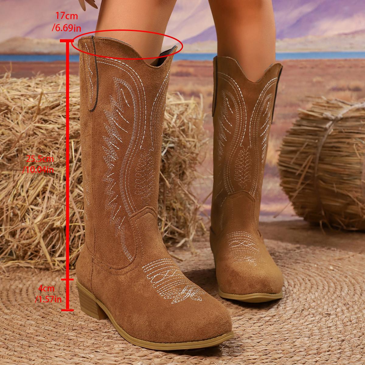 Женские ретро вышитые ковбойские сапоги в западном стиле осень-зима на массивном каблуке сапоги до колена женские с высоким голенищем из ПУ кожи боты женские 43