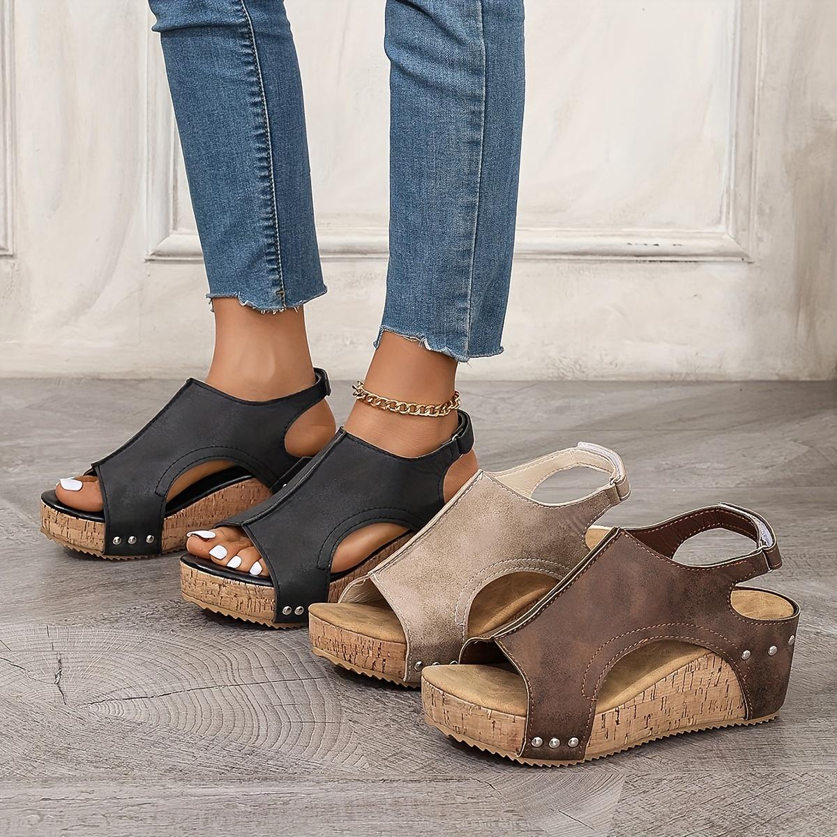 Женские ретро-сандалии на танкетке, туфли на платформе с открытым носком, пряжкой и ремешком, повседневные летние сандалии для улицы 35 чёрный