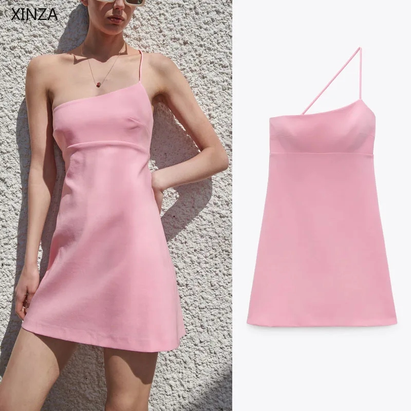 Женские розовые асимметричное платье с открытыми плечами для Za платье 2021 без рукавов с открытой спиной и ремнем, вечерние, женские платья Са...