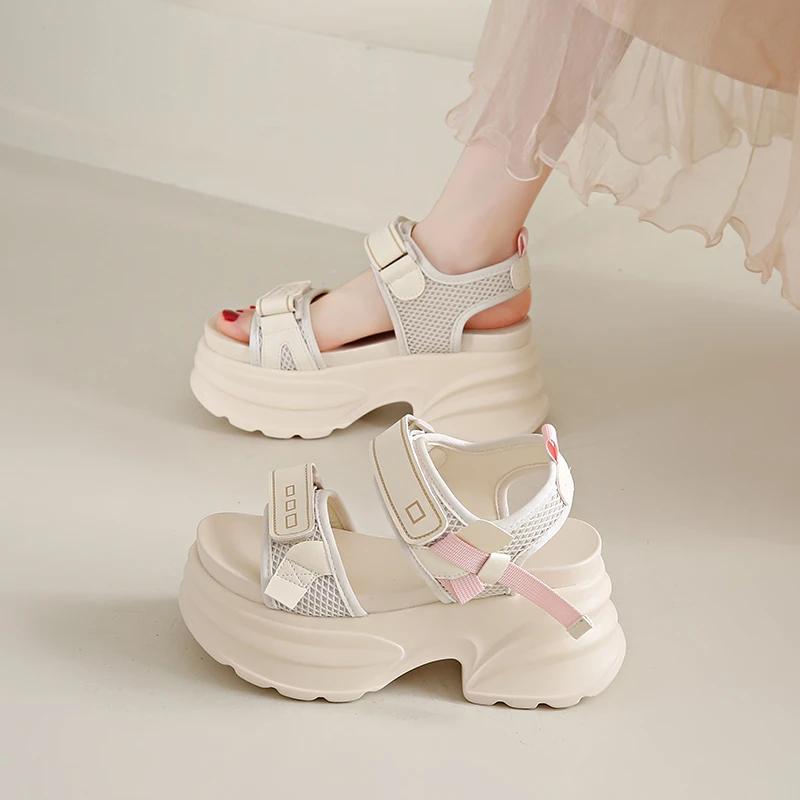 Женские сандалии Дизайнеры Новый бренд Увеличение Толстая подошва 8,5 см Клиновидный каблук Женские Массивная платформа Ремешок с пряжкой Уличные Сандалии 40 бежевый