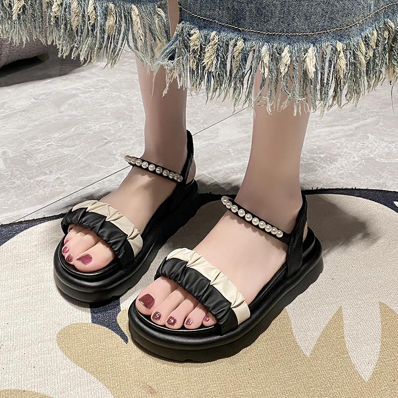 Женские сандалии, летние женские шлепанцы, пляжная дышащая обувь, повседневные мягкие прогулочные сандалии с открытым носком для девочек, большие размеры EU:35 чёрный
